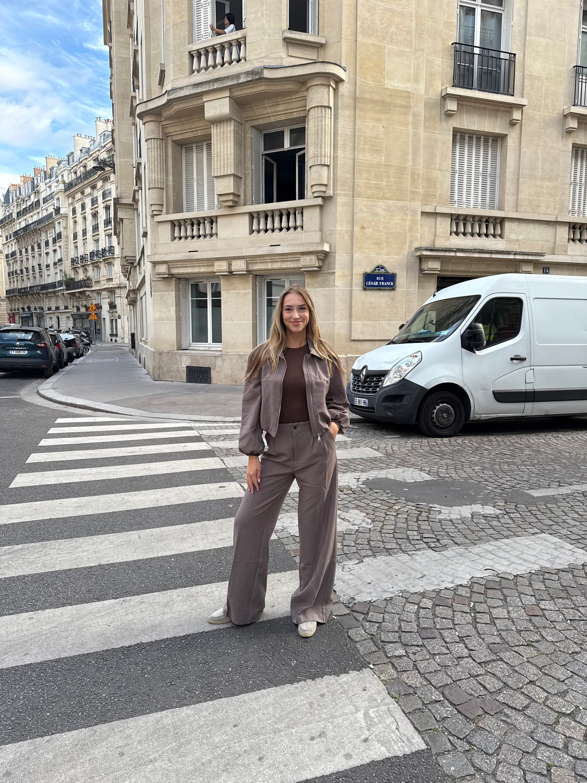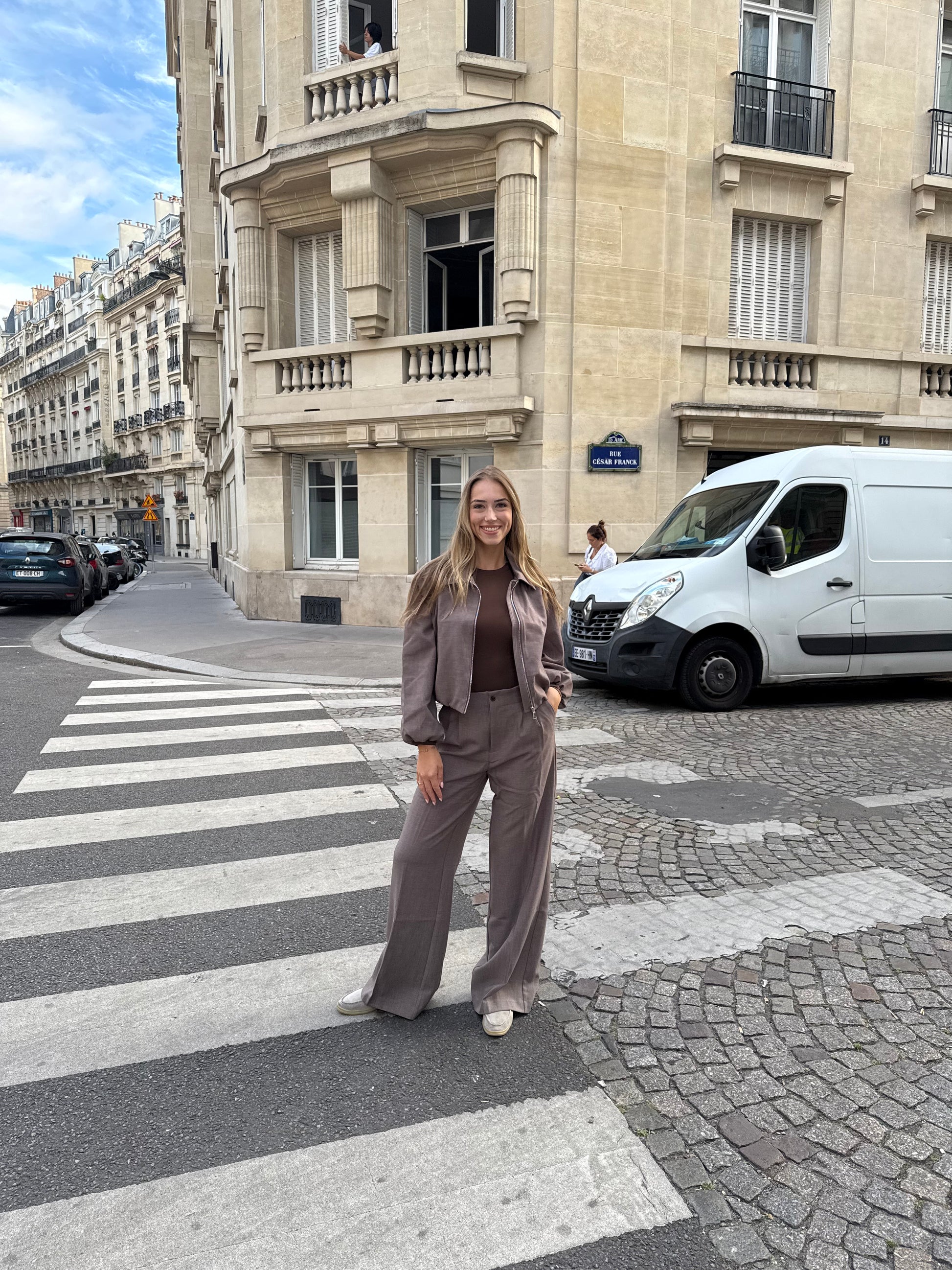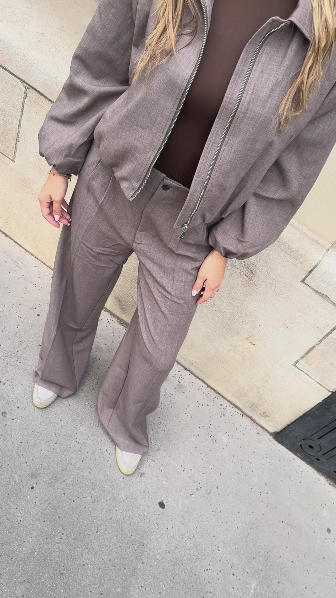 Verkrijgbaar in taupe en bruin en gemaakt van een zachte, comfortabele stof die je elke dag wilt dragen. Draag het jacket samen met de bijpassende pantalon als set, of stijl ‘m losjes over je favoriete jeans of met onze Paris body voor een casual chic effect.